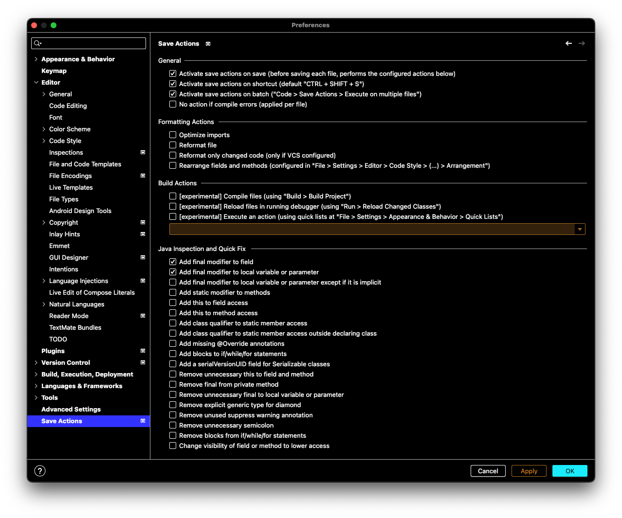 2. Turn on the auto add final. Go into IntelliJ Preferences